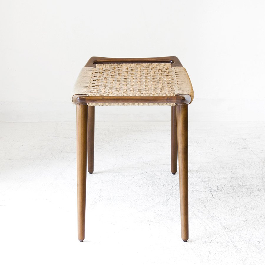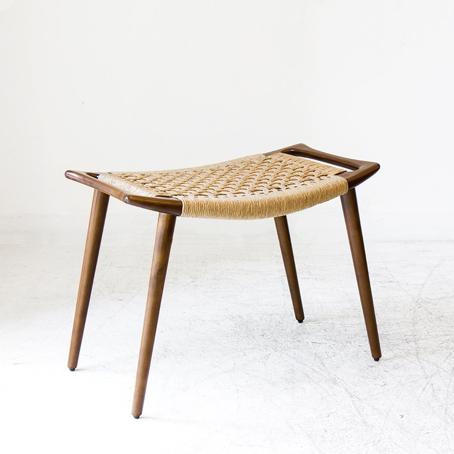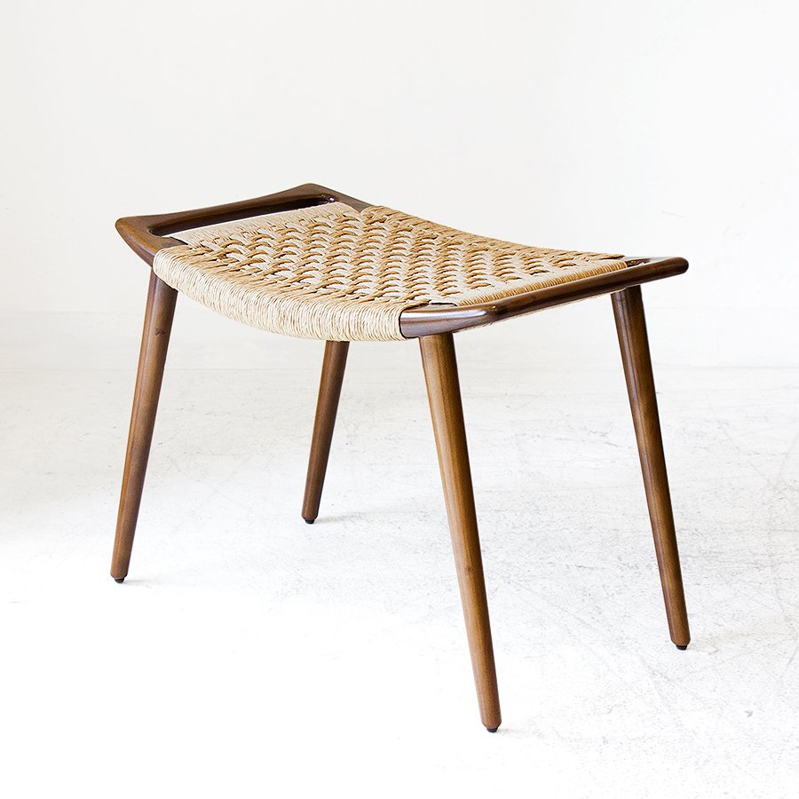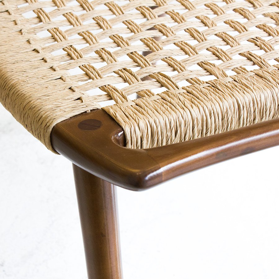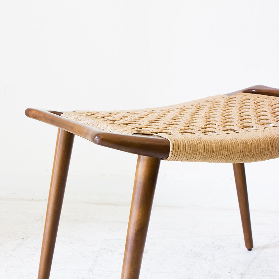 Diseñado en 1953, este banco se luce por las sutilezas formales que lo componen, como el asiento ligeramente curvado y el tejido realizado con hilado kraft o caña. Su medio es de guindo macizo y el material de tejido que se elija, y está compuesto por cuatro patas cónicas debajo de un marco rectangular ligeramente curvado hacia arriba con un panel de asiento tejido. Wegner integró las asas en la forma del asiento, abordando la portabilidad, otro aspecto de la función de un taburete y la facilidad de uso. El banco JH 539 ejemplifica la capacidad de Wegner para crear un asiento hermoso y cómodo, uno que se mantuvo fiel a su nivel de extraordinaria artesanía.